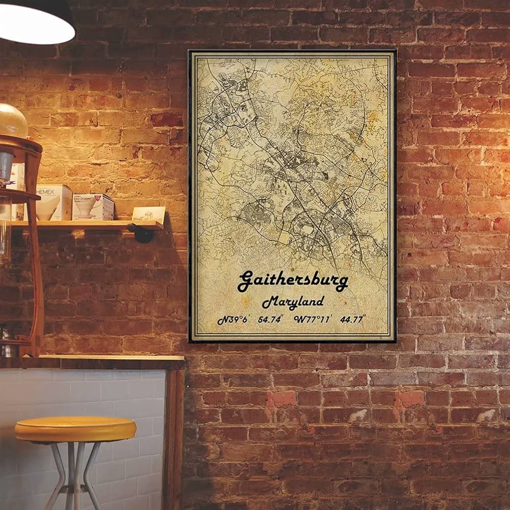Gaithersburg Maryland USA America Vintage Map Poster Artwork Wall