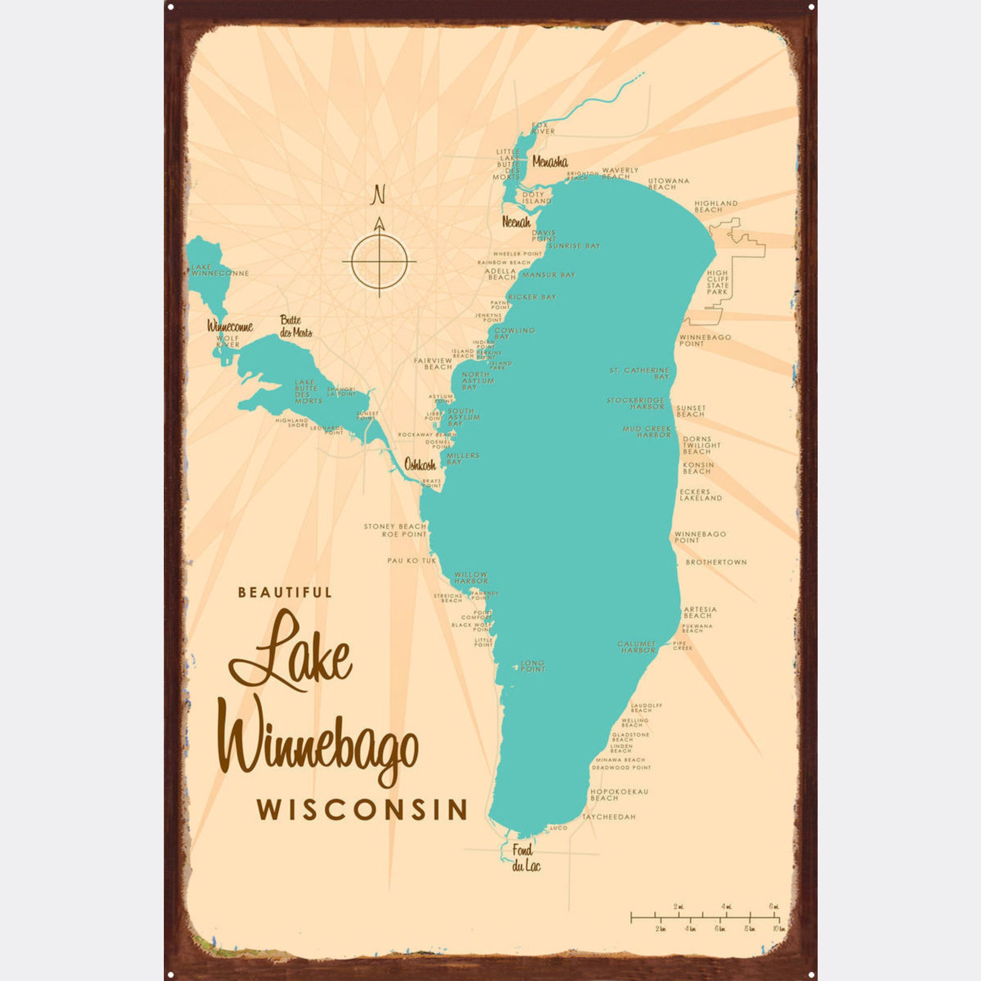 Lake Winnebago Wisconsin, Rustic Metal Sign Map Art – Lakebound®