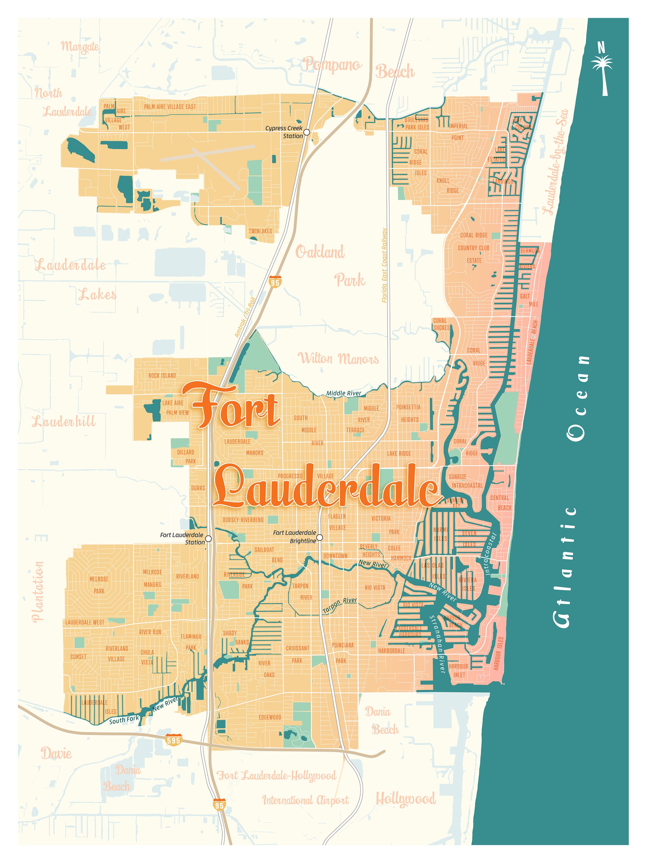 Fort Lauderdale, Florida City & Neighborhoods Map Etsy