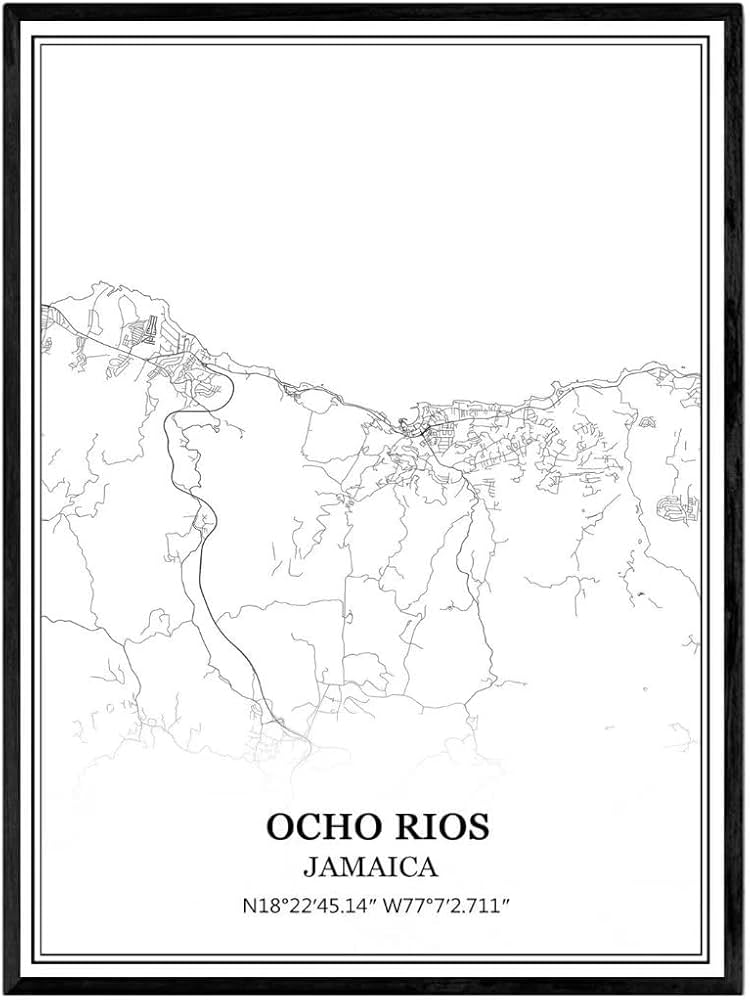 Amazon. TANOKCRS Ocho Rios Jamaica Map Wall Art Canvas Print