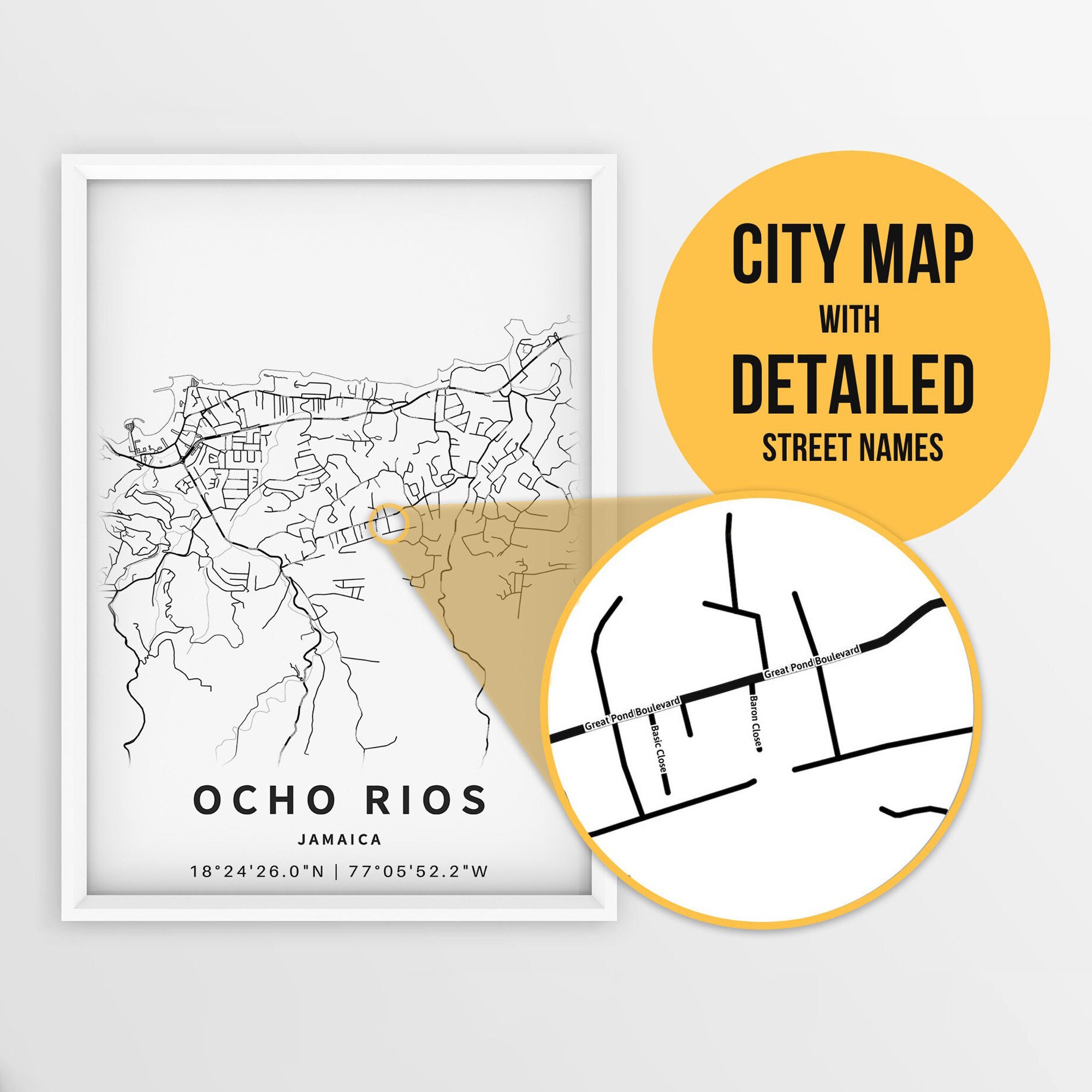 Ocho Rios Map Poster Your City Map Art Positive Prints
