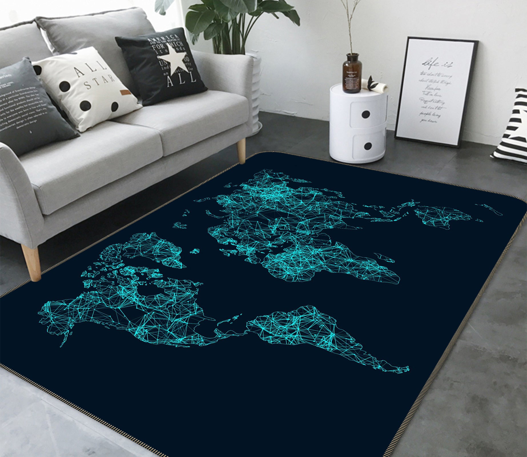 World Map Area Rugs, 3D Rug for Living Room, Kitchen Mat, World